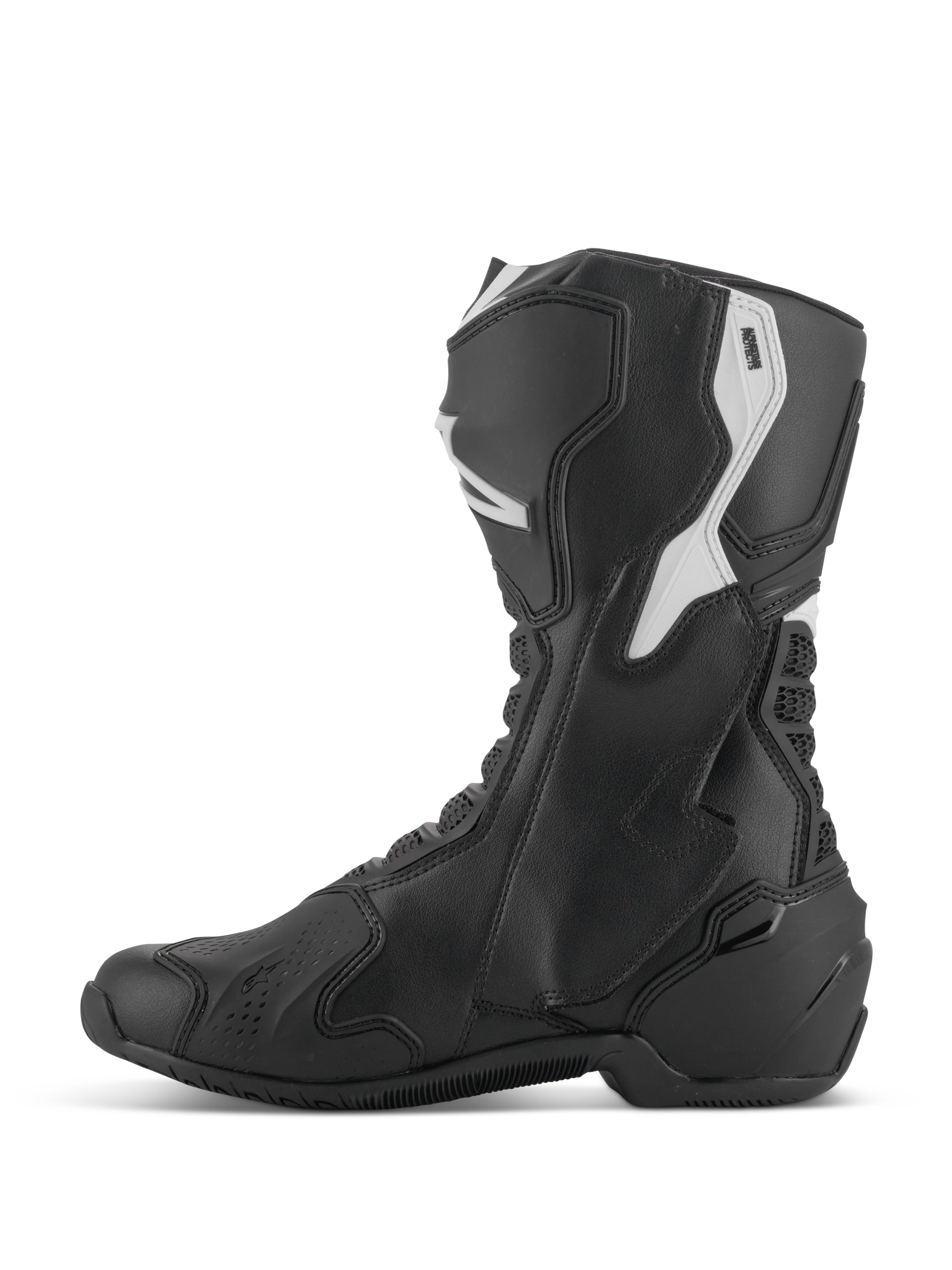 Die SMX-6 v3 Stiefel sind mit einer Vielzahl innovativer Sicherheits- und Schutzfunktionen ausgestattet. Sie sind die ultimativen Performance-Reitstiefel für die Rennstrecke und die Straße, vollgepackt mit aus dem Rennsport abgeleiteter Technologie und schützenden Materialien, die Fahrern auf der Schiene oder der Straße einen entscheidenden Leistungsvorsprung verschaffen. Mit seinem neu gestalteten Obermaterial wurde der SMX-6 v3 präzisionsgefertigt, um sich eng an die anatomischen Konturen des Fußes anzupassen und optimale Flexibilität und verbesserten Gehkomfort zu bieten. Jede Komponente der SMX-6 v3 Stiefel wurde sorgfältig mit Blick auf die Leistung des Fahrers entwickelt, einschließlich der Schutzinnovationen, der verbesserten Ergonomie und der Komfortmerkmale.